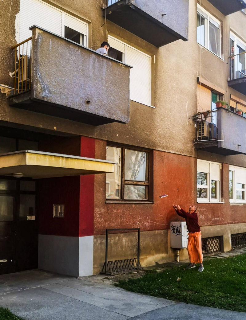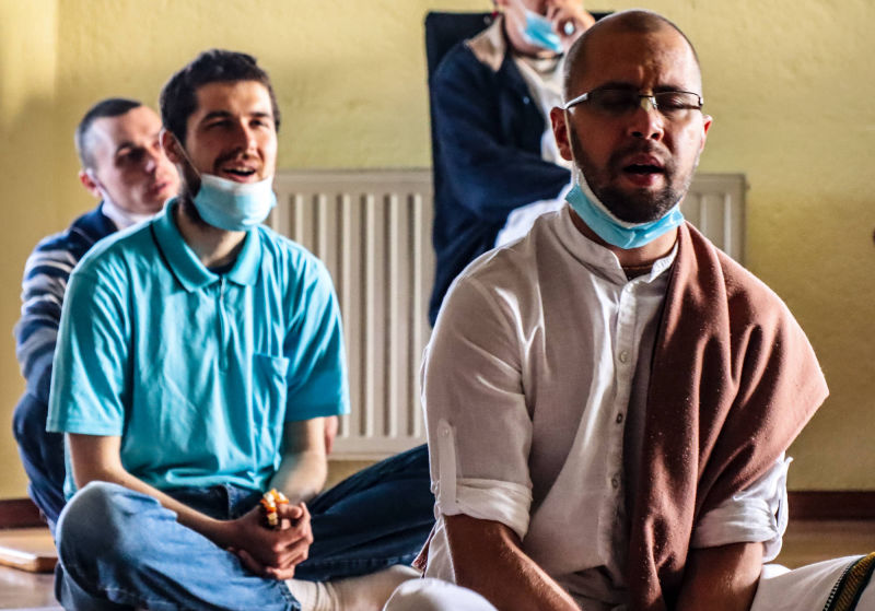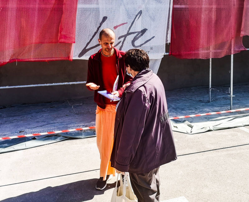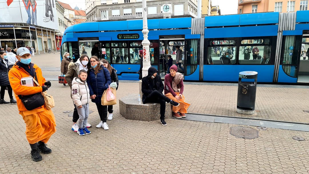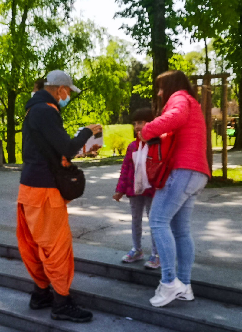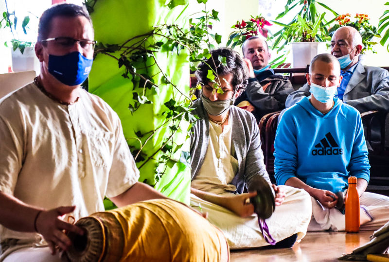 Svakodnevna Srimad Bhagavatam predavanja uživo online preko Facebook stranice hrama urodila su plodom. Naime, jedan naš pratitelj, Mirel, javio nam se porukom da nas želi pobliže upoznati i postati Hare Krišna. Vaikuntha-murti das i bh. Gauranga nedugo nakon toga Mirelu su pokucali na vrata. Domaćin je ponizno postavljao pitanja i zapisivao odgovore u bilježnicu. Bhakte su ga naučili osnovama prakticiranja svjesnosti Krišne kod kuće; Kako se mantra na brojanici, nudi hrana Gospodinu i u koja sve doba dana slaviti gurua i Gaurangu. Bh. Mirel je kupio Bhagavad-gitu i brojanicu te dao prekrasnu donaciju svježeg voća i povrća za Šri Šri Gaura Nitai. Molimo sve Vaišnave koji ovo čitaju da bhakta Mirela obasipaju svojim blagoslovima za što uspješnije napredovanje u duhovnom životu svjesnom Krišne!