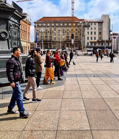 Travanjski MSF održali smo u Karlovcu. Na ovaj "safari" nakon dugo vremena otisnulo se dvadesetak bhakta. Dok su sankirtan bhakte dijelili knjige ostali bhakte su posebno entuzijastično glasno pjevali i plesali cijelo vrijeme. Podijeljeno je 31 transcendentalna knjiga Srila Prabhupade te 130 paketića keksić-prasadma. Na kraju smo se svi okrijepili u New Santipur Sri Sri Nitai Gauracandra Mandiru, smještenom u prekrasnoj prirodi na Mrežničkom Brigu, gdje nas je domaćin Raghunatha dasa jako lijepo ugostio pa mu se ovim putem od sveg srca zahvaljujemo. Prabhu je pored svega, kao vrhunski domaćin, još dao i veliku donaciju za naš hram. Hvala mu i na tom prekrasnom primjeru!