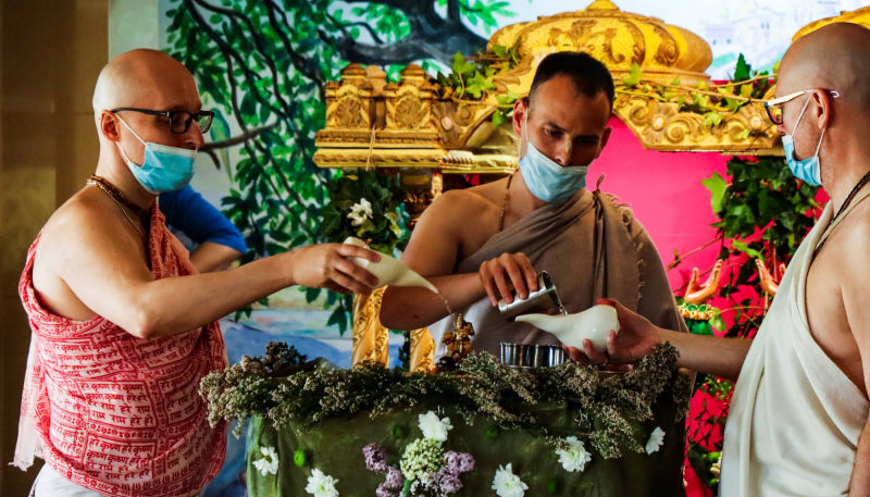 Bhajane su vodili Prema-murti das i Seva-kunja devi dasi, predavanje je održao Nitai-paramananda das koji je i predvodio abhisek ceremoniju, a za veliku gozbu pobrinuli su se Vaikuntha-murti das i dva (Super) Marija.