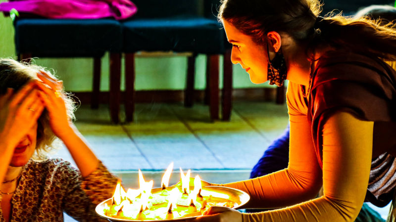 Tulasi-manjari dd za prekrasno donirano cvijeće, donacijama na račun i kolačima.