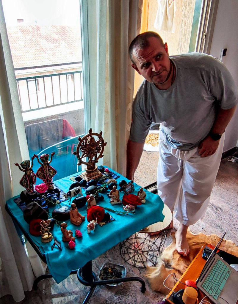 Oltar: Sve službe pri oltaru u hramu su u potpunosti pokrivene i napokon, nakon dugo vremena, ne osjeća se stres oko istih te se bhakte misionari mogu s većom kvantitetom, ali i kvalitetom posvetiti propovijedanju. Kakogod, za sve koji žele i mogu uključiti se u hramsko obožavanje Sri Sri Gaura Nitai, ta prilika je tu za Vas, a nudimo i osobnu edukaciju oko svih oltarskih službi. Ovom prilikom pohvalili bismo Sasini devi dasi koja je iskoristila dobrobit toga te sada svakodnevno, po nekoliko sati, služi božanstva u hramu.