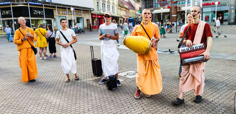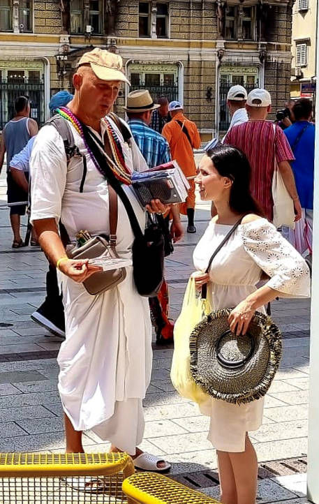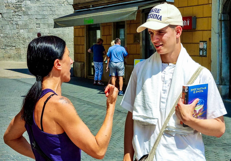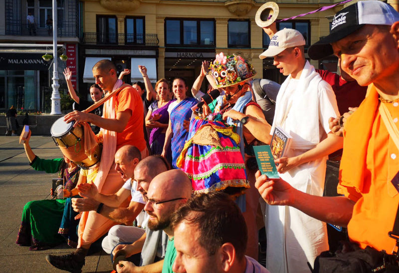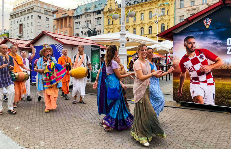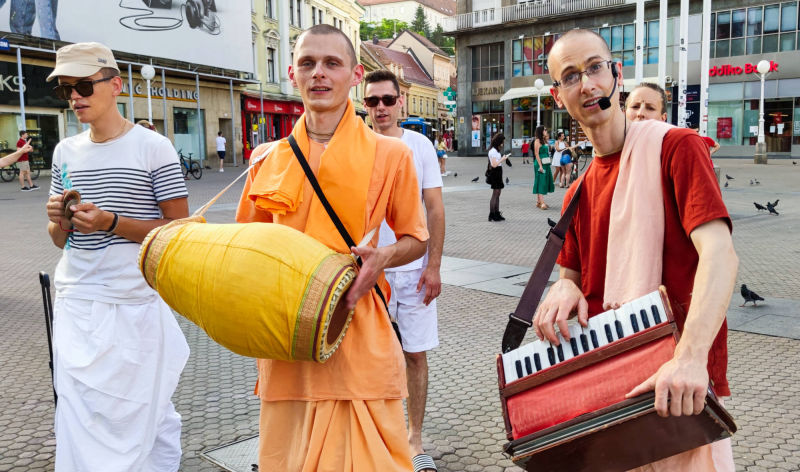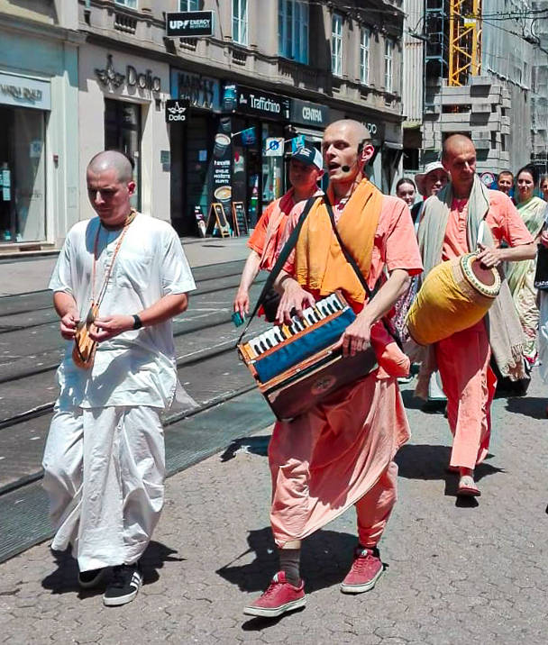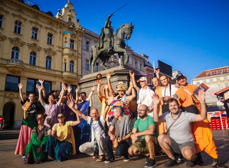 Nakon dugo vremena, planetarno poznata 'Harinama Ruci' putujuća skupina, predvođena Visnujana dasom iz Slovačke, ovoga puta posebno opunomoćena prisustvom Njegove Svetosti Maha Visnu Swamija, posjetila je Zagreb i boravila u hramu. Osim Maharaja i Visnujana, ostatak ekipe činilo je još dvoje bhakta - bhakta Vedran iz Splita (sin mataji Ekangini) i Jivananda das iz Slovačke. Osjećamo se posebno zahvalnim na neprocjenjivom kirtan iskustvu s Maharajem te divnim predavanjima koje je održao u dva navrata. Za vrijeme njihovog boravka održali smo tri zajednička harinama u kojima smo podijelili preko 100 knjiga!