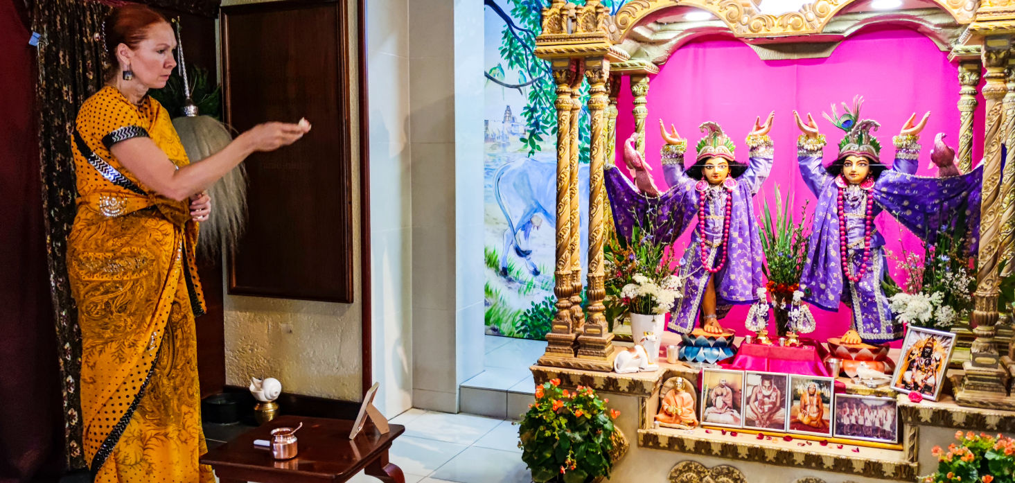 Bhoga za božanstva: Ukoliko imate brahmansku inicijaciju možete kod kuće pripremiti jelo poput slatkiša te ga donijeti u hram kako bi se ono moglo ponuditi za večeru Šri Šri Gaura Nitai. Jayanti devi dasi to čini redovno ponedjeljkom i petkom.