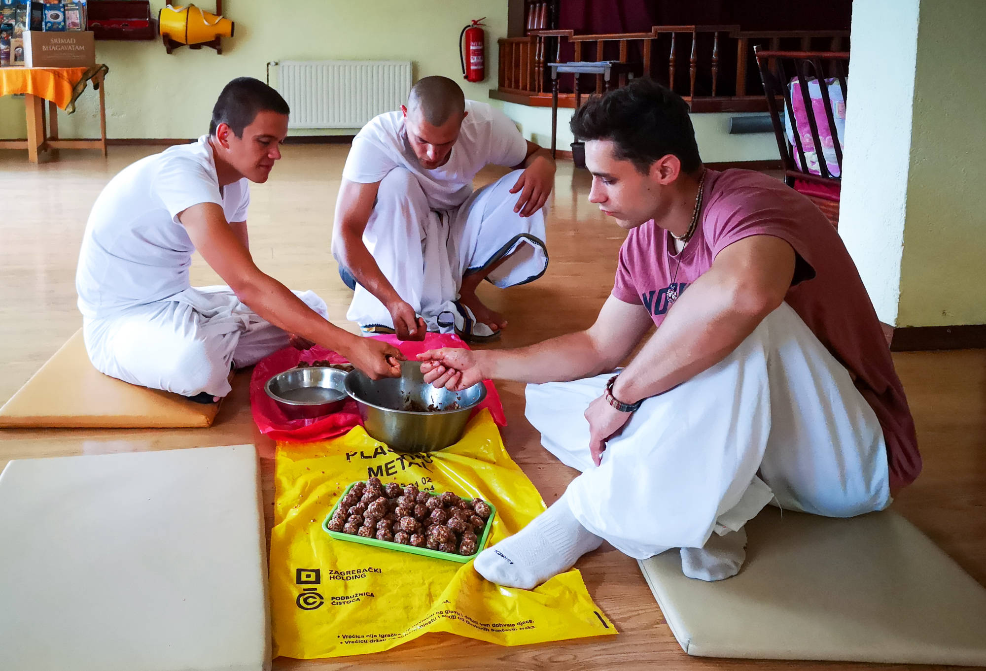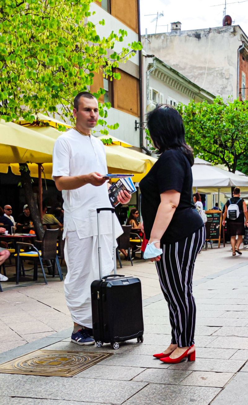 Potrebe bhakta: Želimo da svi bhakte, stanovnici hrama, udobno i zadovoljno nastave služiti mirnoga uma. Naročito sankirtan bhakte koji gotovo svakodnevno izlaze van zahtijevaju kvalitetnu i udobnu odjeću i obuću, termos boce, torbe i kolica itd. Svojim donacijama, namjenski za tu svrhu, možete pomoći da im to osiguramo.
