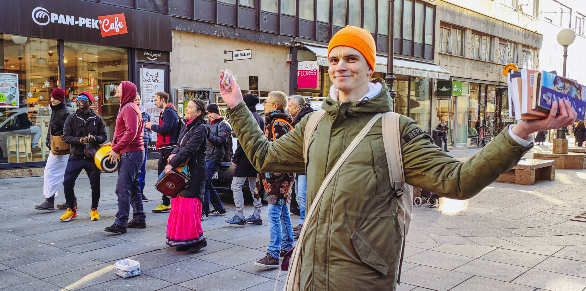 Neizmjerna hvala svim bhaktama koji su unatoč izazovnim zimskim uvjetima sate i sate proveli na ulici pjevajući u harinamu te dijeleći knjige i kolačiće prolaznicima.