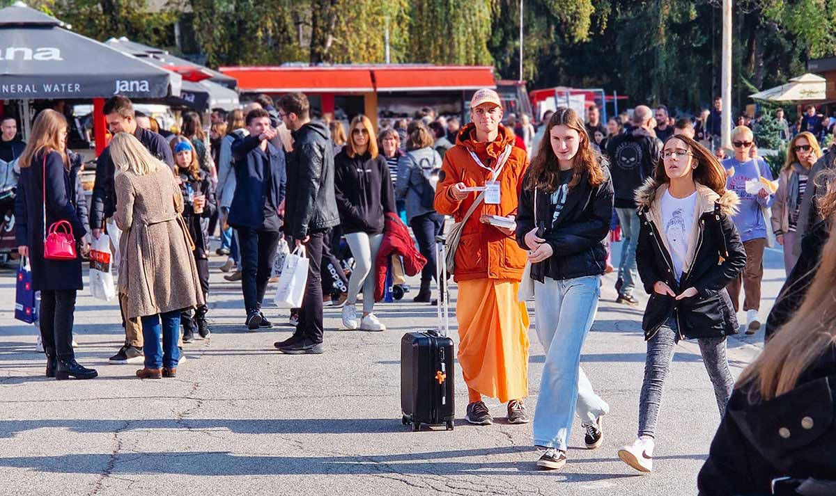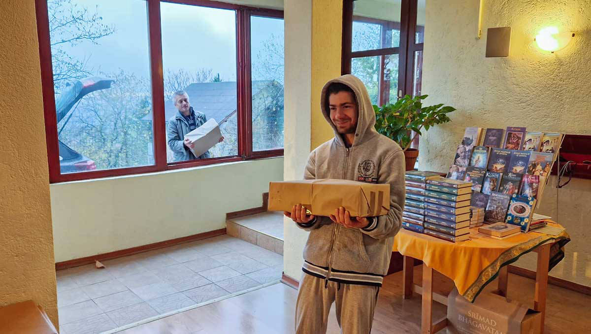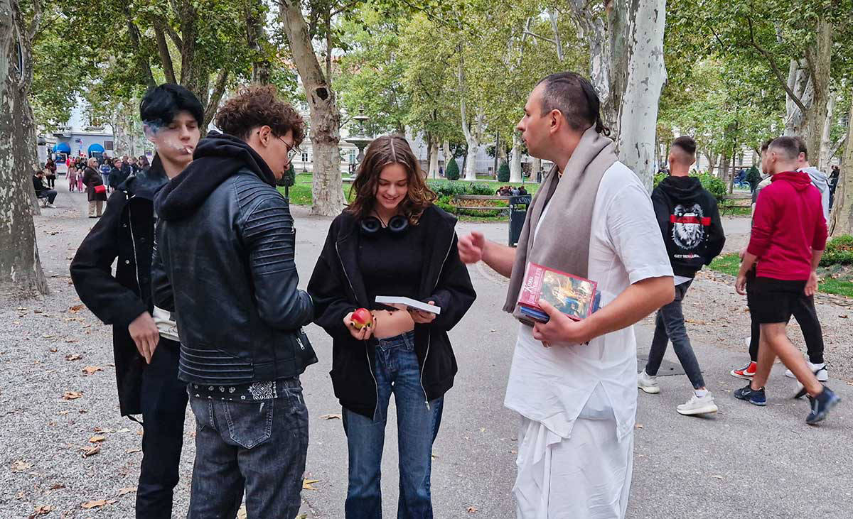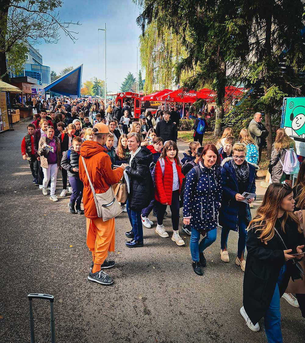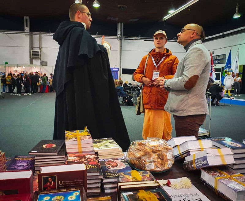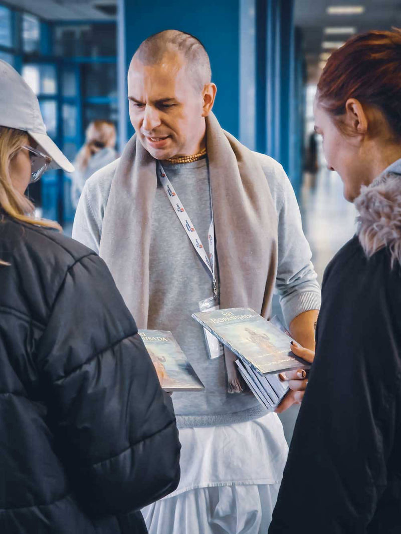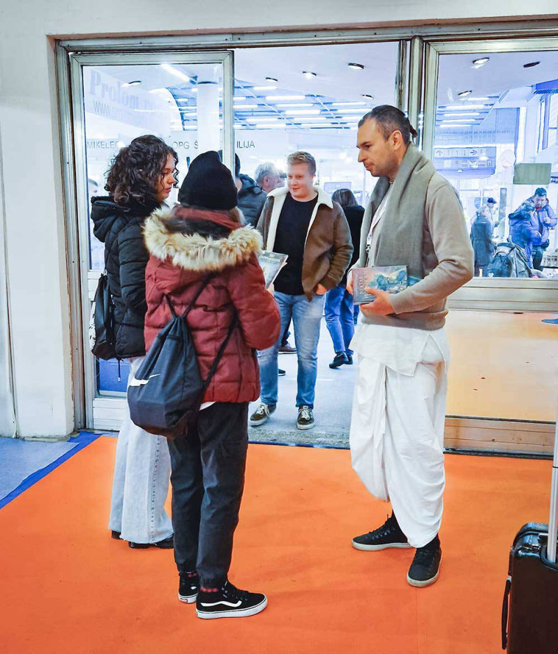 Ovom prilikom želimo zahvaliti svim bhaktama koji su sudjelovali u pripremi štanda, dijeljenju knjiga, doniranju za troškove prijave na sajam te svim ostalim „sitnim” službama koje su u konačnici, ovog mjeseca rezultirale značajnim porastom u dijeljenju knjiga. U službu je bilo uključeno preko 30 bhakta. Tako smo zajedničkim naporima za vrijeme trajanja Interliber maratona podijelili 1.336 knjiga te preko 3.400 keksića!
