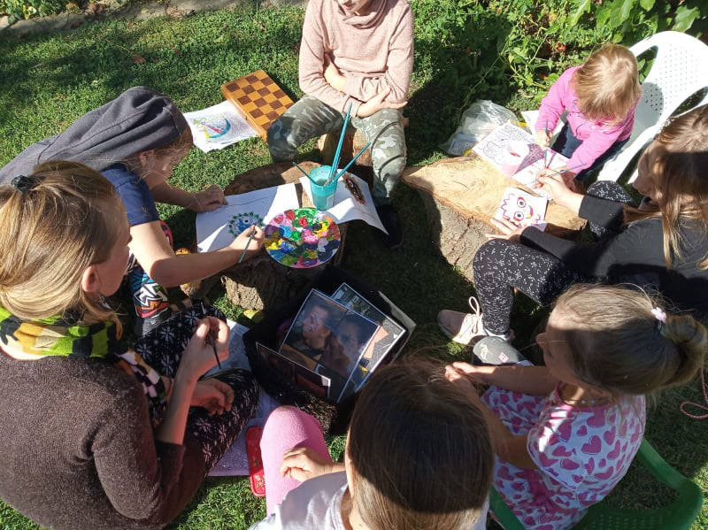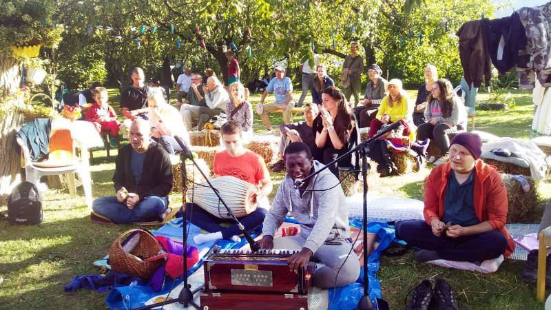 With sunny weather and fire, about a hundred devotees spent a pleasant Sunday afternoon with bhajans, lecturing and socializing together. The leaders of the Gopal guru school, among other things, arranged activities for the fall for the youngest.