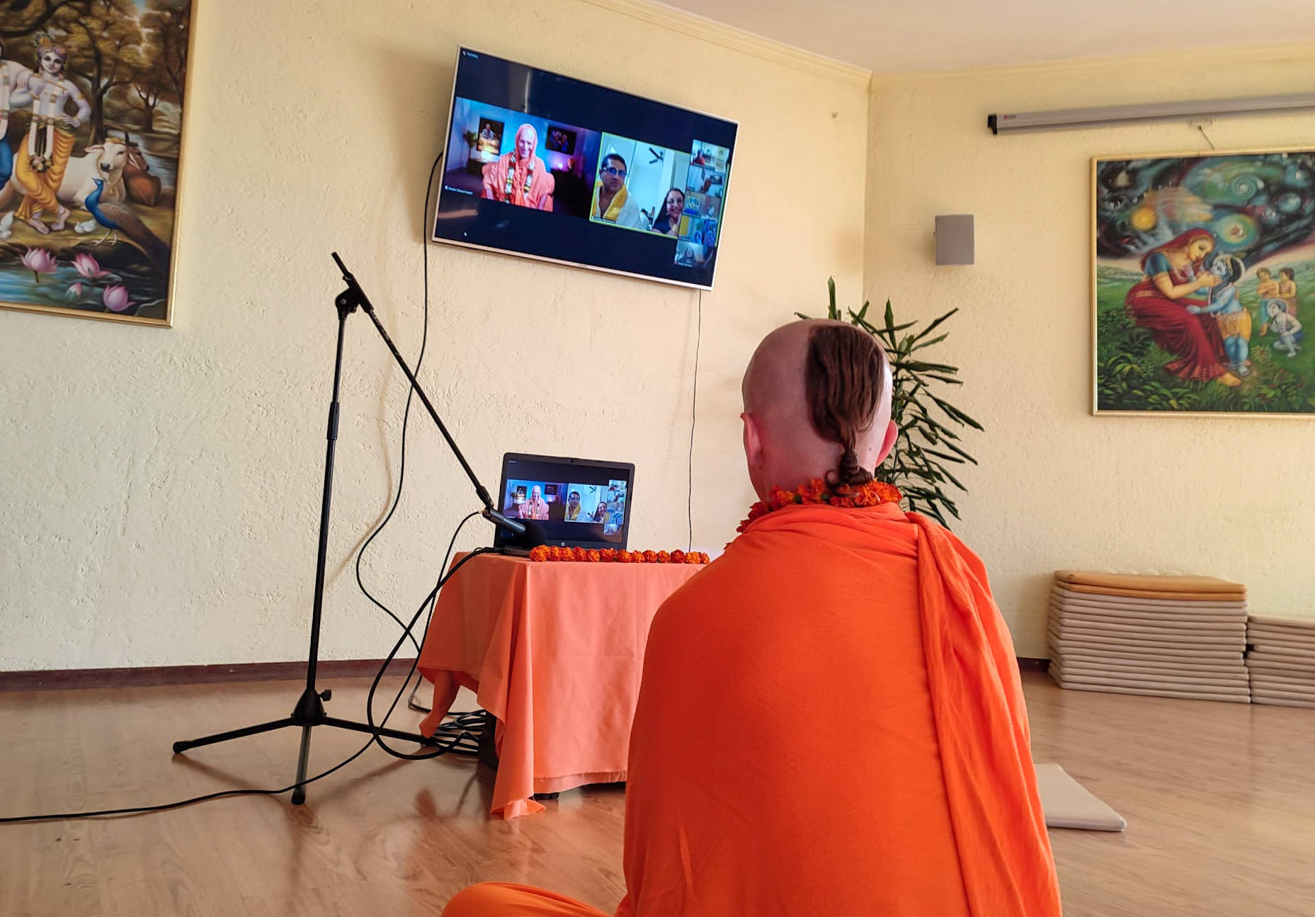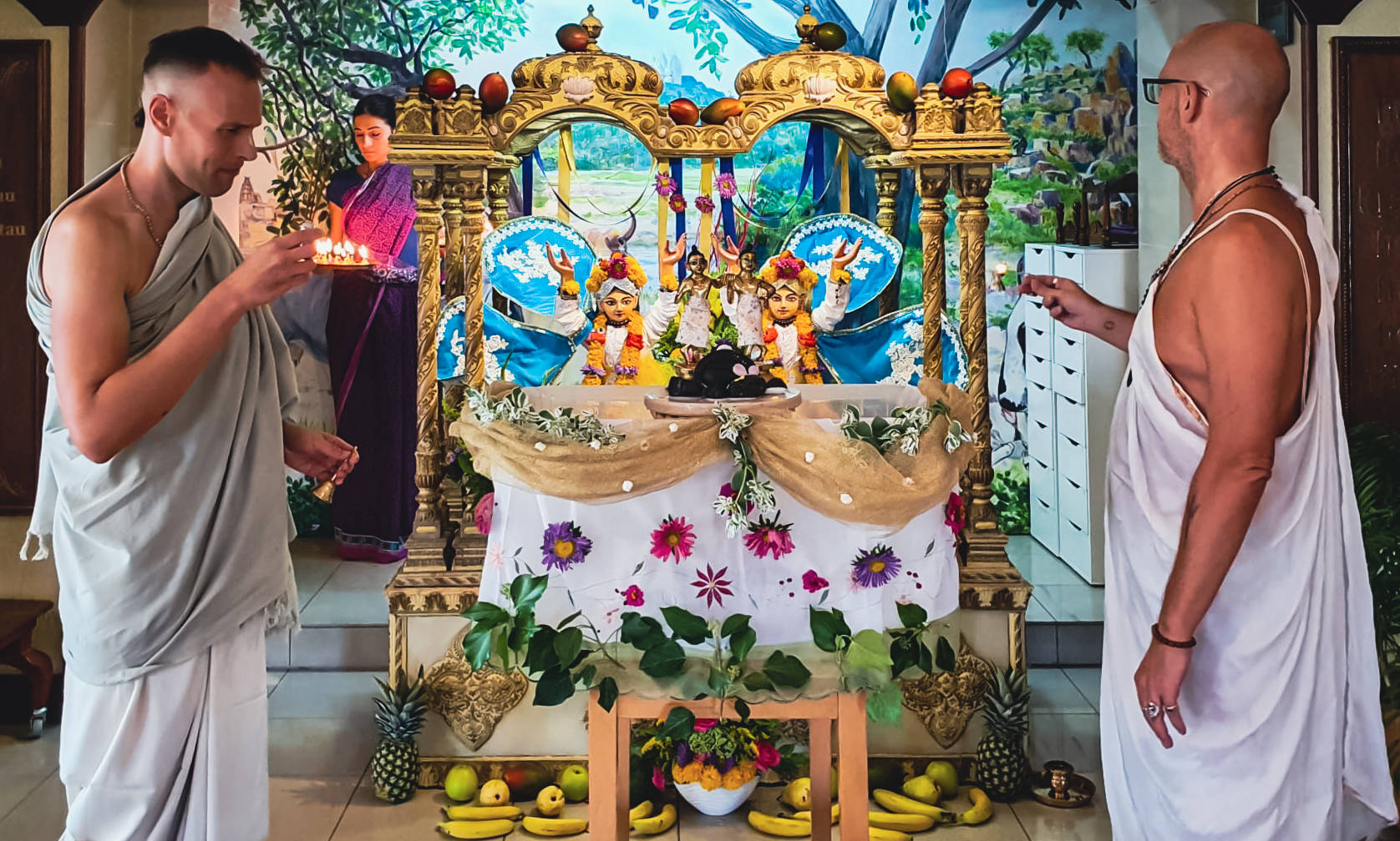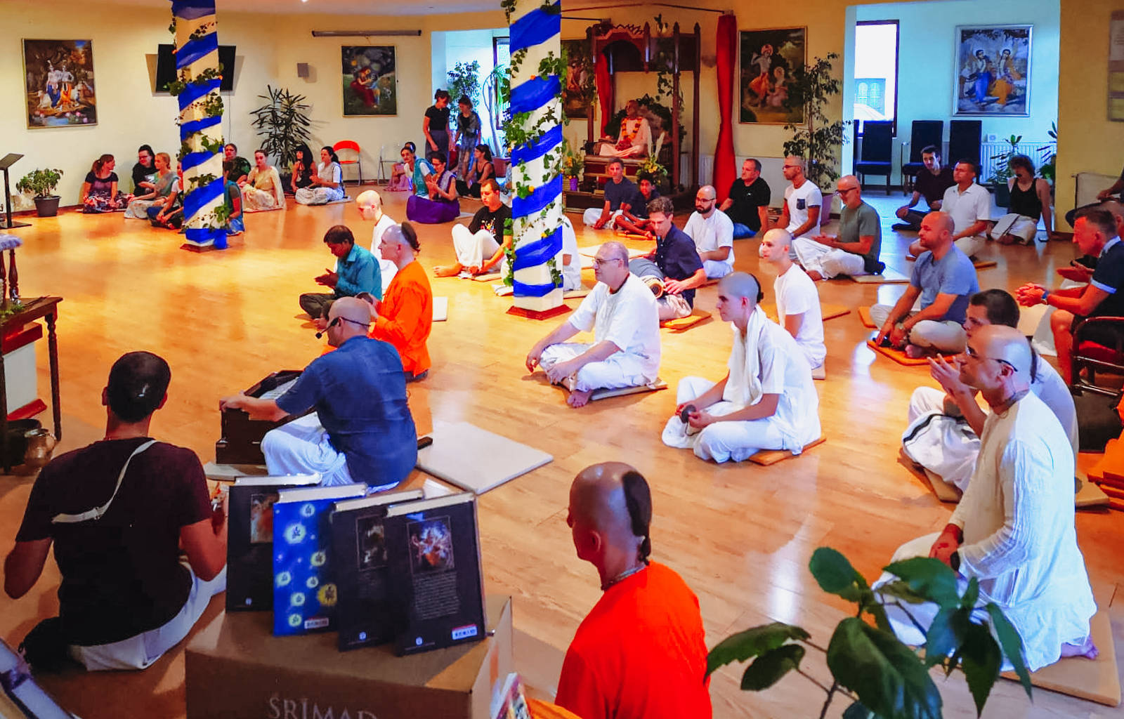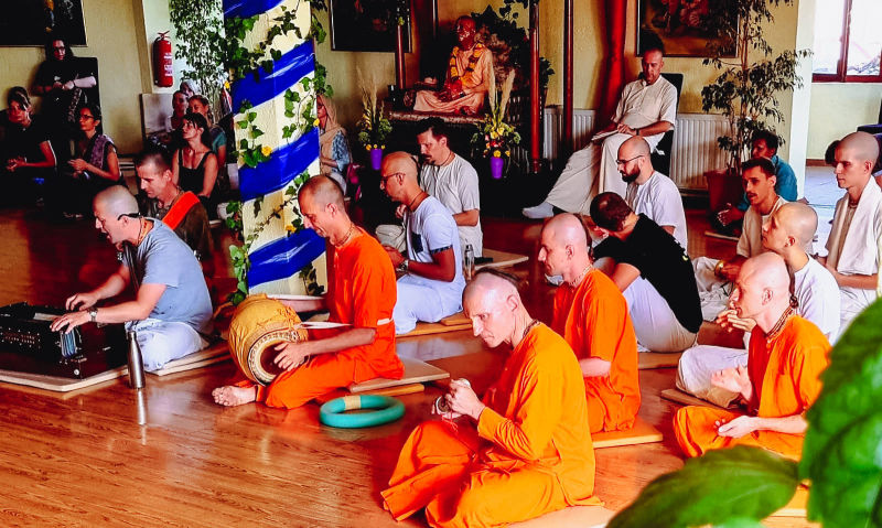 We said at the beginning that this festival gathers the most visitors. So in one moment, in the temple room alone, as many as 130 people were celebrating Krishna together!
