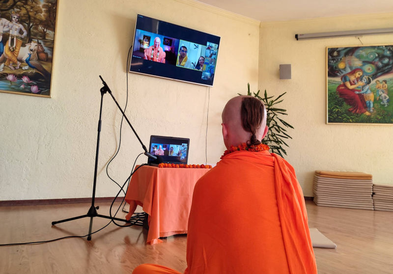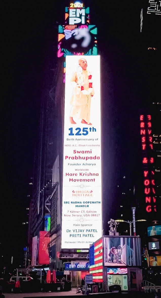 All over the world, this day was followed in a special way and with great attention, in some places even by the media. Thus, in New York, in the famous Time Square, a giant photograph of Srila Prabhupada with some of the most important information about his life appeared. In India, the Prime Minister, Narendra Modi, showed the public a special coin with the image of Srila Prabhupada, which was made in honor of this great anniversary. And our ISKCON temple was invited to participate in an online conference ahead of that event in India.