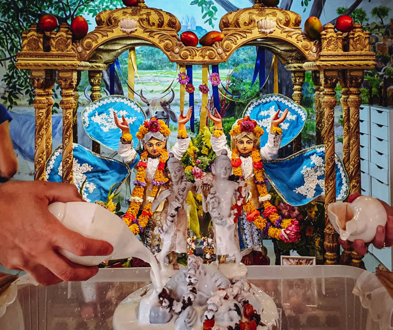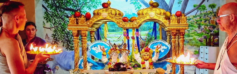 As August is quite an intense month, full of festivals and events, we would like to take this opportunity to thank the abhisek team, which has been dedicated, careful and very professional for years to ensure that the deities in the temple get bathing and worship in general. The Abhisek team is led by Nitai-paramananda das, and these devotees also serve: Vaisnava-seva d and wife Lila-avatar dd, Narahari dd, Krsna-rupini dd, Dinadayadri dd, Krsna-katha dd, Krsna-kanta d and bhn. Ivan from Petrinja. Recently, Krsna-rupini dd, Nrsingha-lila dd and husband Matsya d and Vrsabha d (CMS) also joined the team. Saridvara dd is an external collaborator who sends a multitude of fruit garlands for abhisek from every festival in Sinj.