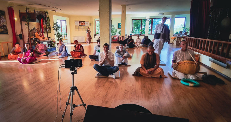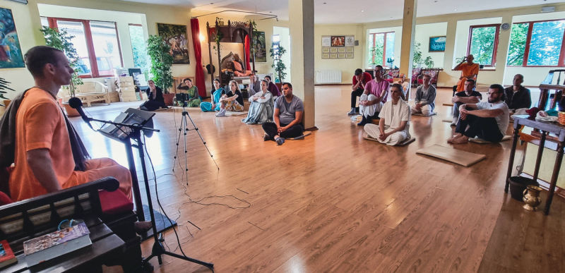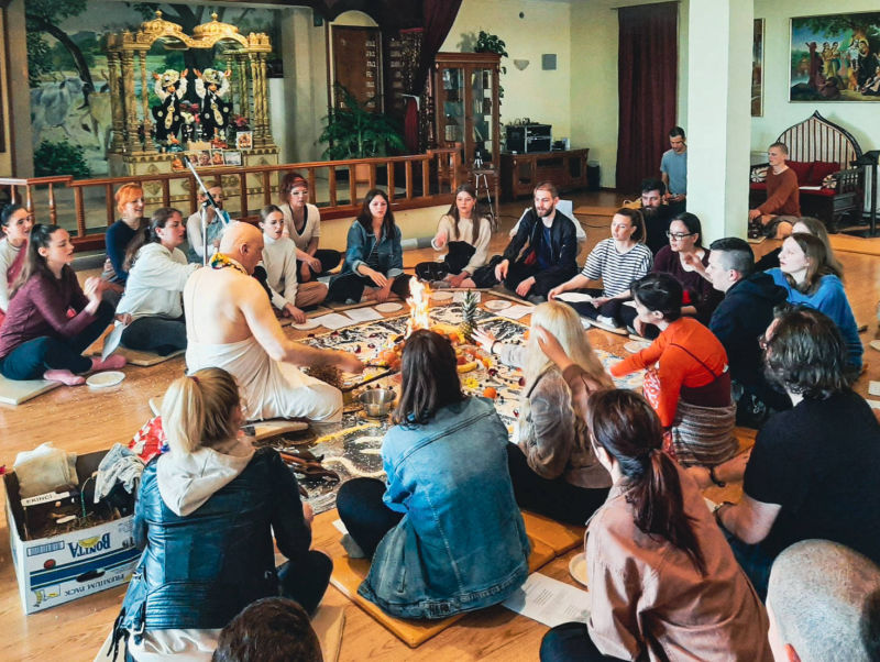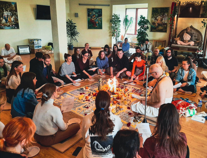 Around twenty students from the Faculty of Philosophy, cared for by their professor Ramahari prabhu (ex Hrvoje Čargonja), visited the temple where they had the opportunity to witness the performance of a true Vedic yajna, by participating in it themselves.